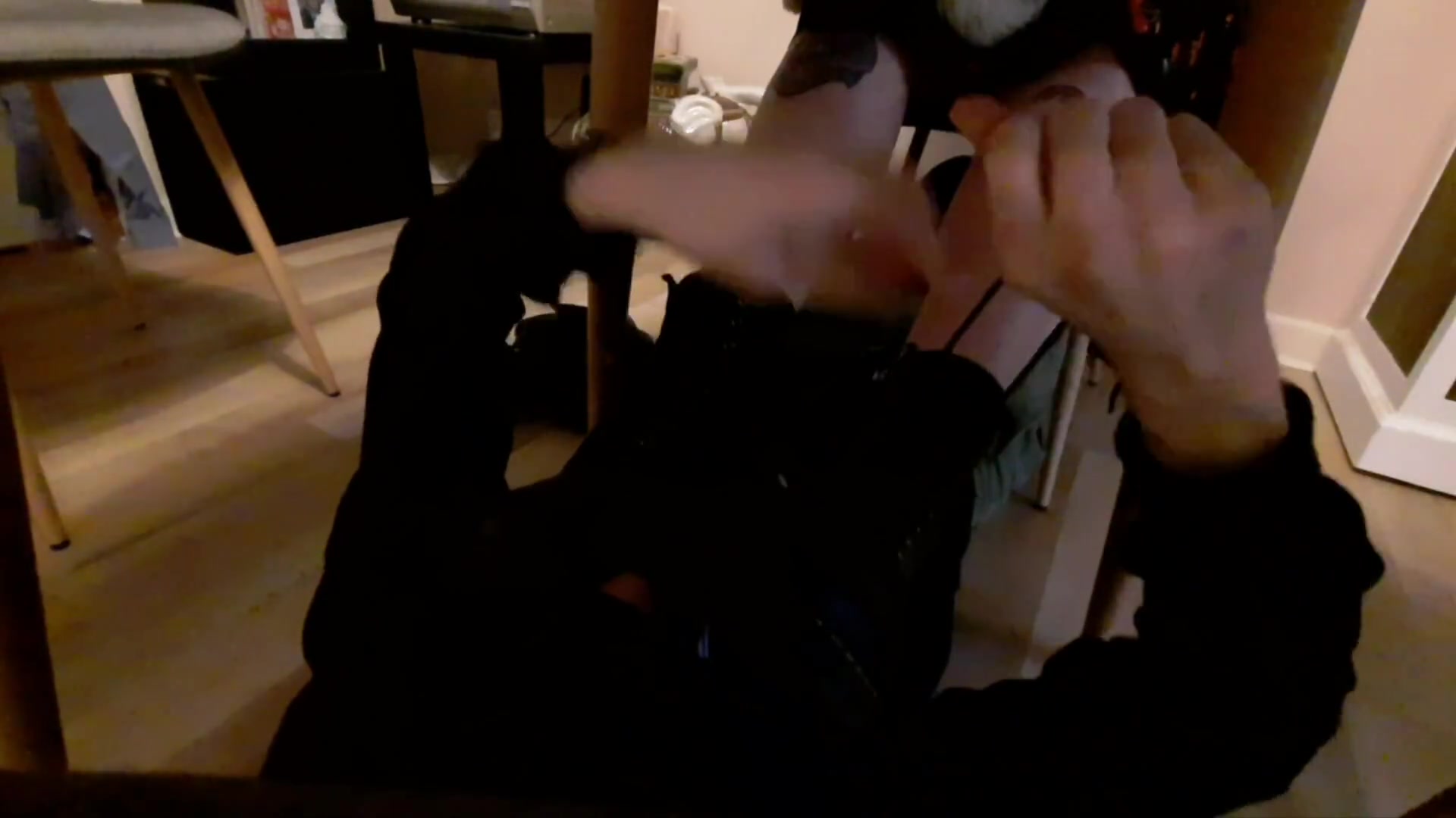 Stinky Foot Smother Under The Table - Take My Boots Off
